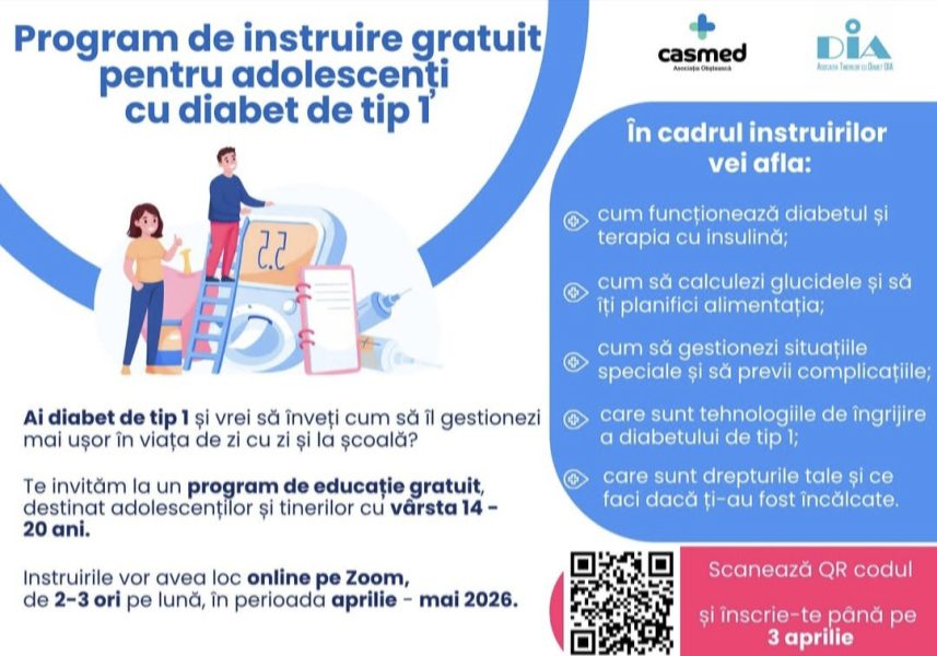 Asociația Tinerilor cu Diabet DIA, în parteneriat cu Asociaţia CASMED, oferă un program de educaţie structurată pentru adolescenți și tineri cu diabet tip 1 cu vârsta 14-20 de ani şi familiile acestora.